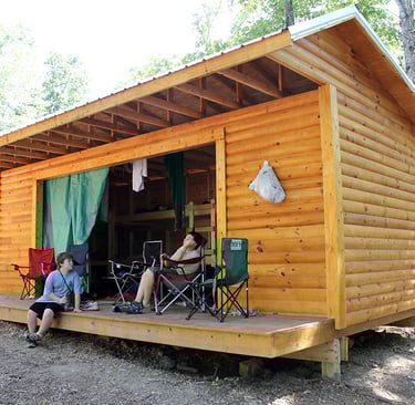 can be stored under bunks.Adirondacks are 3-sided wooden cabins with a wide-open front